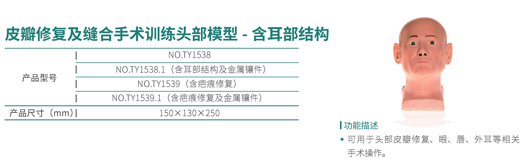皮瓣修復及縫合手術訓練頭部模型 - 含耳根結構